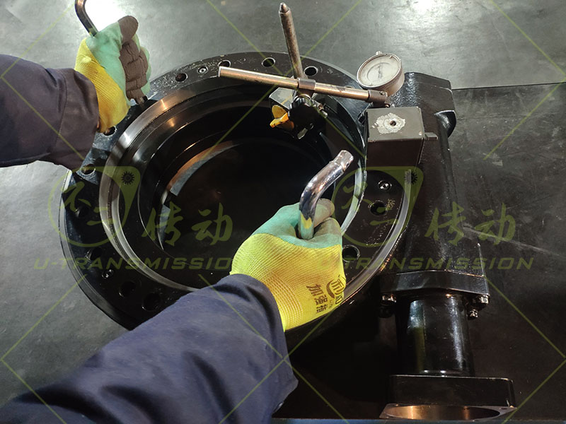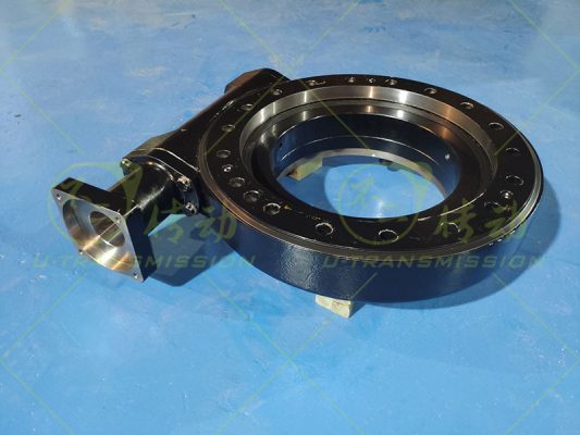 裝配調(diào)試時(shí)對(duì)回轉(zhuǎn)驅(qū)動(dòng)進(jìn)行多點(diǎn)的齒間隙檢測(cè),保證回轉(zhuǎn)驅(qū)動(dòng)的精度在0.05°以內(nèi),調(diào)整完齒間隙,對(duì)回轉(zhuǎn)驅(qū)動(dòng)進(jìn)行靈活性檢測(cè),確保一圈上所有的點(diǎn)都不能有卡阻現(xiàn)象,保證客戶裝機(jī)使用萬(wàn)無(wú)一失。不二傳動(dòng)始終本著為客戶著想,給客戶提供最大的便捷,這款回轉(zhuǎn)驅(qū)動(dòng)專門為客戶設(shè)計(jì)了適配法蘭,客戶收到貨后,可以直接連接減速電機(jī),方便省心。