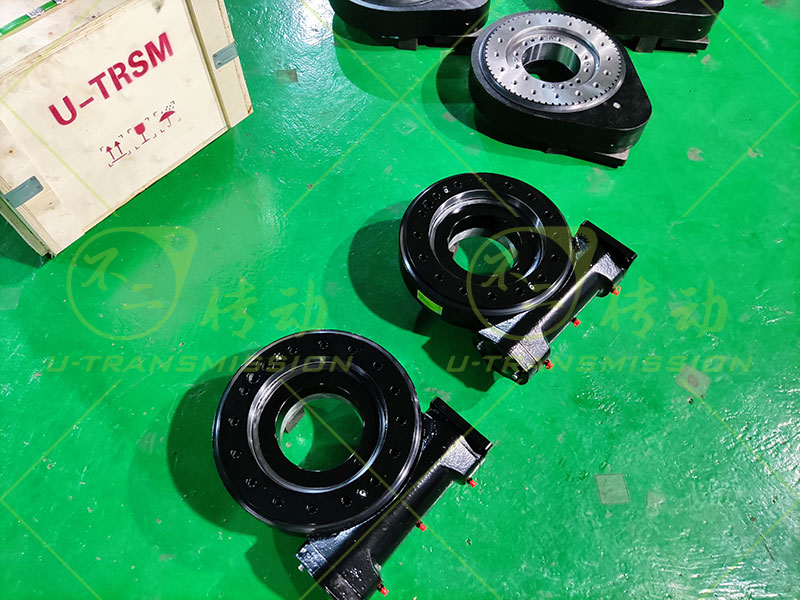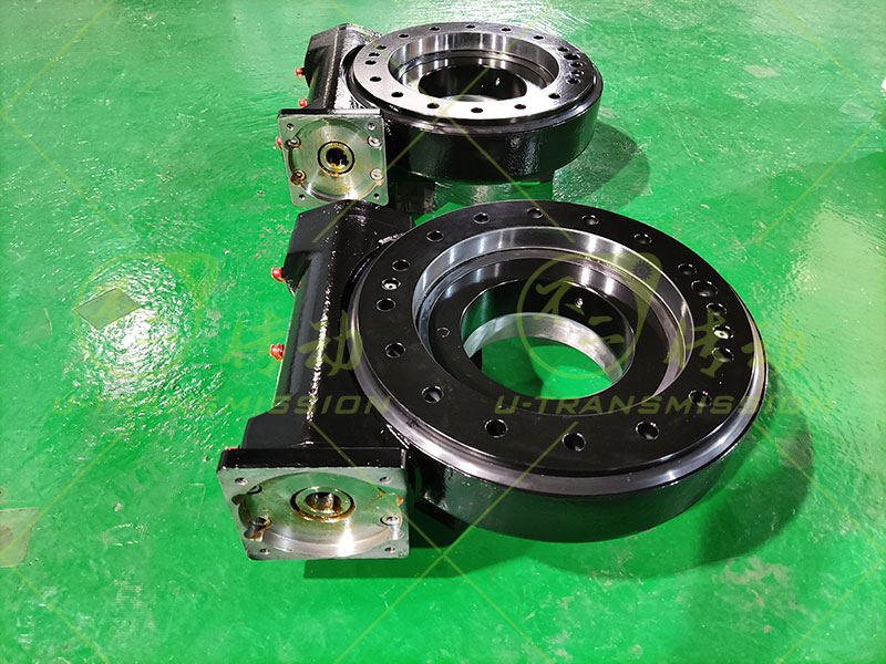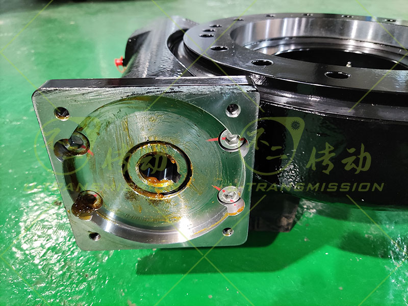SE9 蝸輪蝸桿回轉(zhuǎn)驅(qū)動裝置應(yīng)用在自動化設(shè)備上,驅(qū)動豎直安裝,帶動工裝翻轉(zhuǎn),用戶設(shè)備轉(zhuǎn)速低,輸出扭矩大,需要大減速比,必須能夠機械自鎖,在突發(fā)狀況下,工裝需要保持不動,根據(jù)用戶的要求推薦用戶使用SE9,工程師幫用戶在標準驅(qū)動的基礎(chǔ)上改裝適配法蘭,使客戶的減速機可以跟回轉(zhuǎn)驅(qū)動裝置直接連接,減少中間環(huán)節(jié),降低成本,增加可靠性,獲得用戶好評。