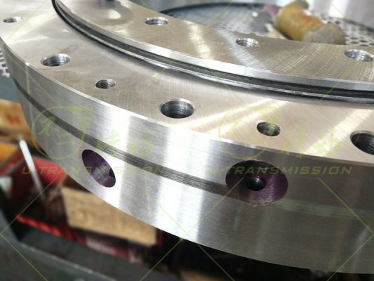 020.25.560 精密雙排球回轉(zhuǎn)支承客戶用在破碎設(shè)備上,轉(zhuǎn)速60轉(zhuǎn)/分鐘,由皮帶輪直接帶動旋轉(zhuǎn),雙排球回轉(zhuǎn)支承具有轉(zhuǎn)速高,載荷大,抗傾覆能力好,運轉(zhuǎn)平穩(wěn)等特點,加工的難點是保證兩排溝道位置一致還需要保證兩排溝道平行,只有這樣兩排鋼球才能同時受力,才是真正意義上的雙排球,加工不好的話只有一排鋼球受力,就變成單排球回轉(zhuǎn)支承了,失去了使用雙排球回轉(zhuǎn)支承的意義。