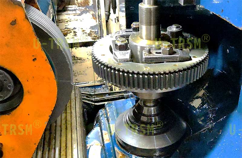 精密型回轉(zhuǎn)驅(qū)動(dòng)我們一般采用0游隙的回轉(zhuǎn)支承,這樣可以保證回轉(zhuǎn)驅(qū)動(dòng)工作的時(shí)候外圈不會(huì)因?yàn)槭芰Ξa(chǎn)生軸向和徑向的移動(dòng),避免了因?yàn)榛剞D(zhuǎn)支承游隙造成的精度損失。為了保證齒間隙≤0.1mm,必須在齒淬火后對(duì)齒圈和齒輪進(jìn)行磨齒加工,磨齒可以保證齒輪和齒圈有非常好的齒跳,這是保證齒間隙的前提條件。
