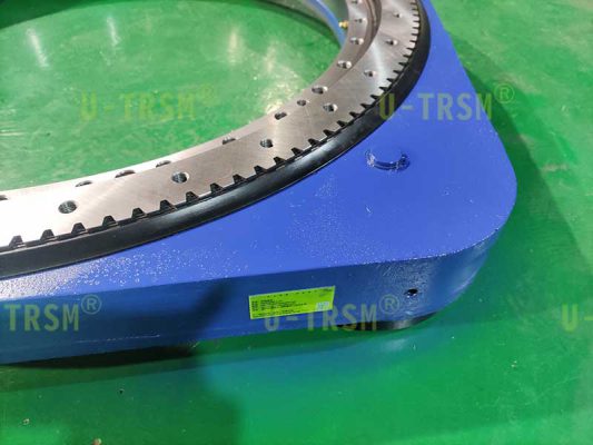 型號(hào)為S-II-O-0841的外齒回轉(zhuǎn)驅(qū)動(dòng),是不二傳動(dòng)的工程師為客戶(hù)設(shè)計(jì)的一款應(yīng)用在自動(dòng)化設(shè)備上的產(chǎn)品?;剞D(zhuǎn)驅(qū)動(dòng)需要水平安裝在設(shè)備的平臺(tái)上,帶動(dòng)上面的轉(zhuǎn)臺(tái)旋轉(zhuǎn)。而在轉(zhuǎn)臺(tái)上則安裝了一個(gè)可以在豎直面上旋轉(zhuǎn)的裝置,這樣就由回轉(zhuǎn)驅(qū)動(dòng)和豎直面上的裝置組成了一個(gè)兩軸聯(lián)動(dòng)的旋轉(zhuǎn)機(jī)構(gòu),以此來(lái)完成一些特定的旋轉(zhuǎn)動(dòng)作。