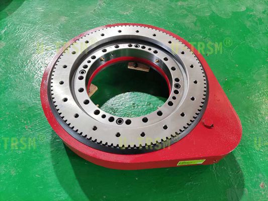 型號(hào)為S-I-O-0311的齒輪式回轉(zhuǎn)驅(qū)動(dòng),是一款應(yīng)用在自動(dòng)化機(jī)械設(shè)備上的外齒式回轉(zhuǎn)驅(qū)動(dòng)??蛻粜枰Q直安裝用,回轉(zhuǎn)驅(qū)動(dòng)在設(shè)備中的載荷很小,而且轉(zhuǎn)速也非常慢,扭矩也小,但是需要較高的回轉(zhuǎn)精度。根據(jù)客戶的這些使用需求,綜合考慮后不二傳動(dòng)的工程師給客戶推薦了這款回轉(zhuǎn)驅(qū)動(dòng)。