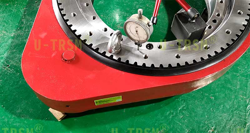 回轉(zhuǎn)驅(qū)動(dòng)內(nèi)部的回轉(zhuǎn)支承齒不進(jìn)行淬火加工,因?yàn)檩p系列的回轉(zhuǎn)支承齒淬火的時(shí)候外圈的變形量比較大,盡管可以通過(guò)后續(xù)加工把回轉(zhuǎn)支承的端跳和徑跳控制到理想的數(shù)值,但是齒淬火后的變形只能通過(guò)磨齒來(lái)校正,而磨齒的成本比較高,也可以達(dá)到很好的回轉(zhuǎn)精度,但有的客戶并不需要那么高的精度。