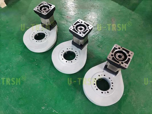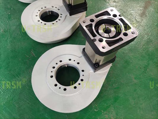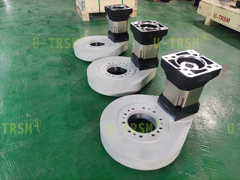 客戶需要我們配套合適的減速機(jī),根據(jù)使用工況,我們選擇了輸出扭矩和減速比都適合的行星減速機(jī),并且對減速機(jī)和回轉(zhuǎn)驅(qū)動做了適配設(shè)計。發(fā)貨前我們?yōu)榭蛻舭惭b好行星減速機(jī),客戶收到貨,直接連接伺服電機(jī)回轉(zhuǎn)單元就可以旋轉(zhuǎn)使用了,非常的方便。