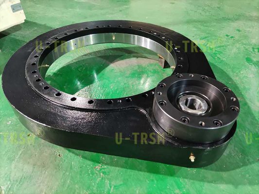 根據(jù)設(shè)備的使用工況及底座和法蘭的尺寸,不二傳動(dòng)的工程師推薦客戶使用型號(hào)為S-II-O-0541的回轉(zhuǎn)驅(qū)動(dòng)。這個(gè)型號(hào)尺寸適中,模數(shù)6的齒,輸出扭矩足夠使用,中等載荷完全滿足客戶使用要求。
