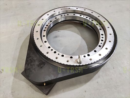 根據(jù)客戶(hù)使用要求,不二傳動(dòng)為客戶(hù)推薦了III系列的0655這款回轉(zhuǎn)驅(qū)動(dòng),為了減小轉(zhuǎn)臺(tái)晃動(dòng),回轉(zhuǎn)驅(qū)動(dòng)采用零游隙,齒淬火后進(jìn)行磨齒加工,可以保證回轉(zhuǎn)驅(qū)動(dòng)具有很小的齒間隙,這就保證了電機(jī)制動(dòng)后,轉(zhuǎn)臺(tái)只有很小的晃動(dòng),滿(mǎn)足客戶(hù)的使用要求。在回轉(zhuǎn)驅(qū)動(dòng)的選型設(shè)計(jì)過(guò)程中要根據(jù)具體的工況選擇不同的回轉(zhuǎn)驅(qū)動(dòng),選擇不同的精度和配置,最終目的都是為客戶(hù)提供性?xún)r(jià)比高,簡(jiǎn)單可靠的回轉(zhuǎn)驅(qū)動(dòng)產(chǎn)品。