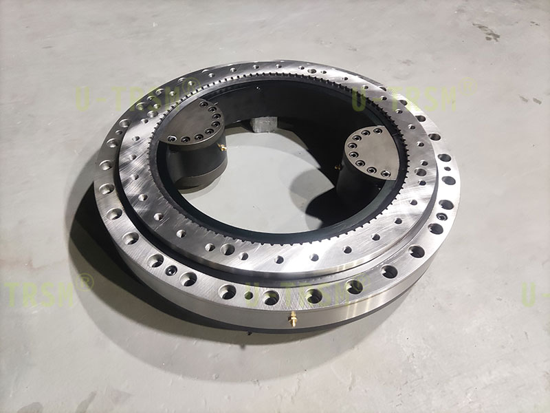 S-I-I-500 精密雙齒輪磨齒內(nèi)齒回轉(zhuǎn)驅(qū)動應(yīng)用在特殊設(shè)備上,回轉(zhuǎn)驅(qū)動采用零游隙設(shè)計,齒淬火后磨齒,雙齒輪同時驅(qū)動回轉(zhuǎn)驅(qū)動內(nèi)齒圈。雙齒輪傳動跟單齒輪傳動相比具有輸出扭矩大,傳動精度高,傳動平穩(wěn),雙齒輪減小齒間隙等優(yōu)點。