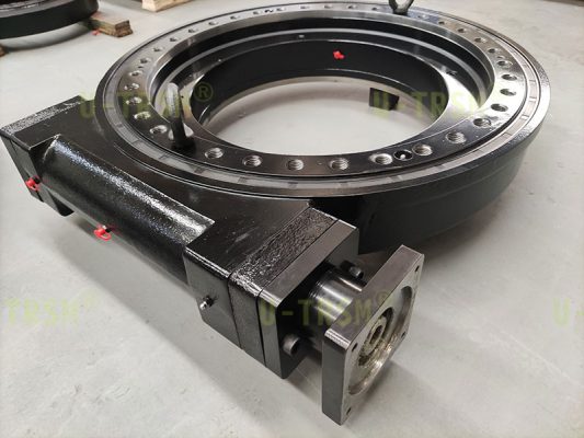 齒輪式回轉(zhuǎn)驅(qū)動(dòng)、蝸輪蝸桿回轉(zhuǎn)驅(qū)動(dòng)、回轉(zhuǎn)支承各有各的優(yōu)點(diǎn)和適用工況。齒輪式回轉(zhuǎn)驅(qū)動(dòng)具有精度高,轉(zhuǎn)速快,防塵防水等優(yōu)點(diǎn),廣泛應(yīng)用在要求高精度和高轉(zhuǎn)速的場(chǎng)合。蝸輪蝸桿回轉(zhuǎn)驅(qū)動(dòng)具有減速比大,可以自鎖等特點(diǎn),廣泛應(yīng)用在要求轉(zhuǎn)速低,要求安全系數(shù)高的場(chǎng)合?;剞D(zhuǎn)支承結(jié)構(gòu)簡(jiǎn)單,生產(chǎn)成本低廣泛應(yīng)用在各種設(shè)備上,追求結(jié)構(gòu)緊湊,設(shè)備整潔,維護(hù)頻率低的客戶可以選擇使用回轉(zhuǎn)驅(qū)動(dòng)來替代帶齒的回轉(zhuǎn)支承。