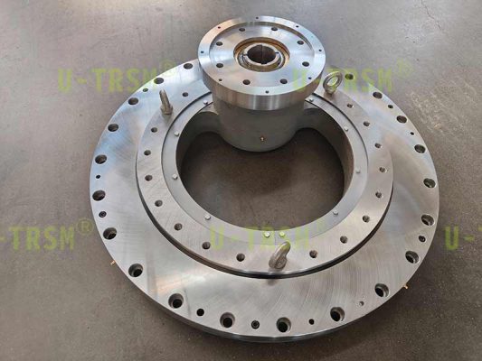 S-III-I-0755直齒式內(nèi)齒回轉(zhuǎn)驅(qū)動,同向設計使得安裝面在同一側(cè),節(jié)省了設備的安裝空間,應用在自動化特種設備上,旋轉(zhuǎn)機械臂底座,此回轉(zhuǎn)驅(qū)動主要承受軸向載荷、傾覆力矩及扭矩,大扭矩輸出。磨齒的加工方式能使得回轉(zhuǎn)驅(qū)動的齒嚙合達到6級及以上的精度,實現(xiàn)精準定位,減小回程間隙,滿足客戶使用。