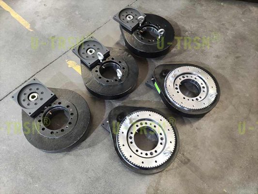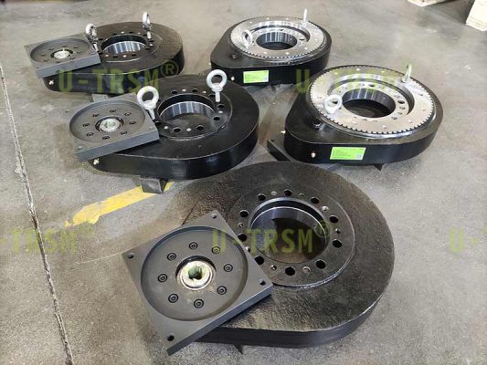 S-I-O-0300 適配大尺寸減速電機(jī)回轉(zhuǎn)驅(qū)動(dòng)應(yīng)用在特種設(shè)備上,客戶使用回轉(zhuǎn)驅(qū)動(dòng)帶動(dòng)轉(zhuǎn)臺(tái)旋轉(zhuǎn)固定的角度,轉(zhuǎn)臺(tái)上設(shè)計(jì)有限位裝置,回轉(zhuǎn)驅(qū)動(dòng)只要能穩(wěn)定旋轉(zhuǎn)就可以,齒只需要堅(jiān)固耐用,可以傳遞扭矩就行。