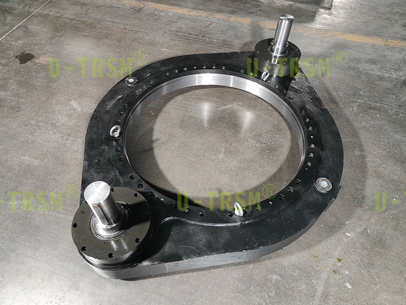 首先,回轉(zhuǎn)驅(qū)動系統(tǒng)作為一種高效的機械運動傳遞方式,廣泛應(yīng)用于工業(yè)生產(chǎn)線、建筑工地、交通設(shè)備等領(lǐng)域。該系統(tǒng)的設(shè)計充分考慮了載荷和扭矩的峰值要求,最大載荷可達6500KN,而扭矩則達到了1700KNm,進一步體現(xiàn)了其在高精度場合下的穩(wěn)定性。
