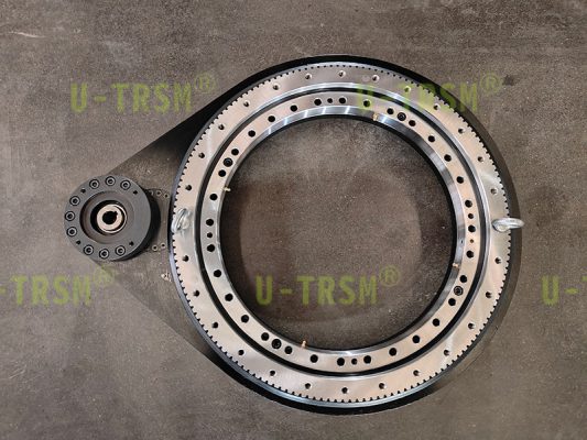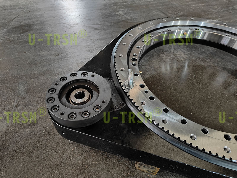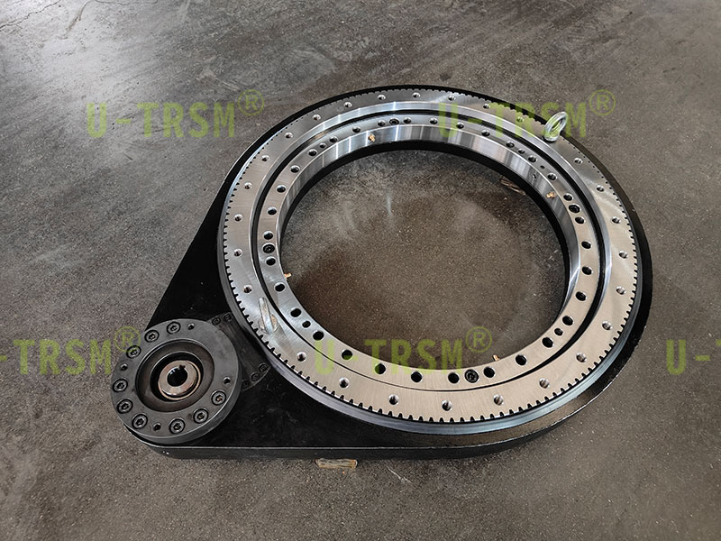 此款回轉(zhuǎn)驅(qū)動(dòng)應(yīng)用于自動(dòng)化機(jī)械設(shè)備上,在標(biāo)準(zhǔn)型號(hào)的基礎(chǔ)上增加中間齒輪設(shè)計(jì),由原來(lái)的單齒輪傳動(dòng)更改為多級(jí)傳動(dòng),輸入與輸出端在同一側(cè)的設(shè)計(jì),此款回轉(zhuǎn)驅(qū)動(dòng)的設(shè)計(jì)優(yōu)點(diǎn)在于,多級(jí)的傳動(dòng)下增加了中心距,使得客戶的輸入端減速機(jī)與電機(jī)遠(yuǎn)離被旋轉(zhuǎn)工件。輸入輸出同側(cè)的設(shè)計(jì)節(jié)省了客戶安裝空間,提高了客戶在設(shè)計(jì)及安裝過(guò)程中的便利性,扭矩較小的輕型的設(shè)計(jì),齒輪沒(méi)有進(jìn)行淬火,抵消了因淬火造成的齒輪輕微變形,提高傳動(dòng)的精度。